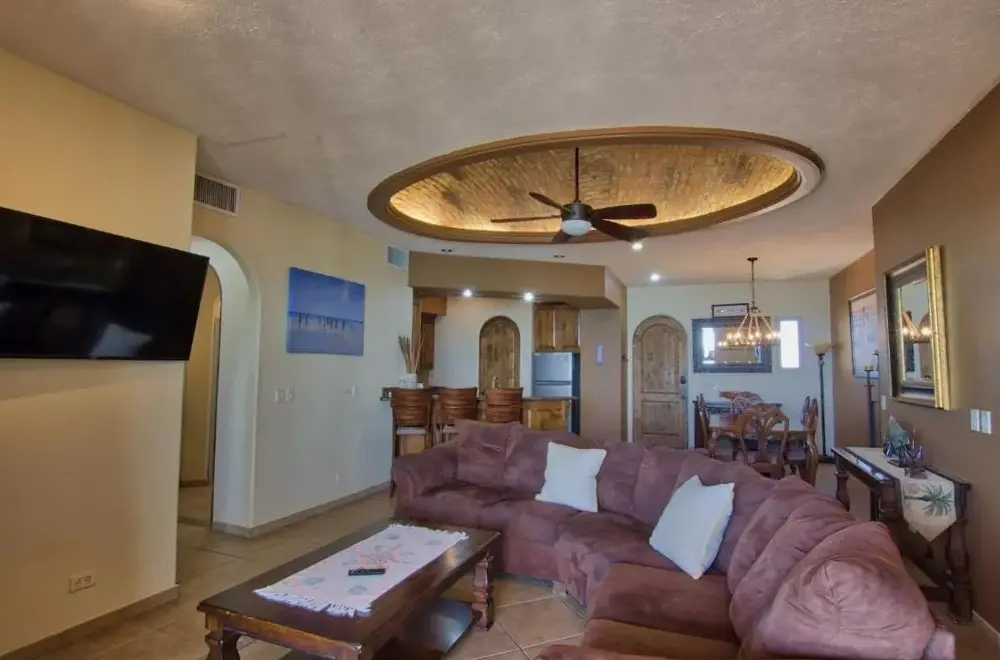 Ubicación frente a la playa: Bella Sirena Beachfront Resort en Puerto Peñasco ofrece una zona privada de playa y acceso directo a la playa. Los invitados disfrutan de vistas al mar y un entorno sereno con una playa de arena a solo 1 minuto a pie. Instalaciones excepcionales: el complejo cuenta con una piscina infinita, una terraza y un área de asientos al aire libre. Las comodidades adicionales incluyen una recepción de 24 horas, salones familiares y seguridad de día completo. El estacionamiento gratuito en el lugar está disponible para los huéspedes. Alojamiento cómodo: las habitaciones ofrecen aire acondicionado, balcones y baños privados con duchas. Cada habitación incluye una cocina con electrodomésticos modernos, asegurando una estancia cómoda. Altamente calificado por los invitados: los invitados aprecian el excelente servicio del resort, el alojamiento cómodo y el impresionante escenario frente al mar, lo que lo convierte en una elección altamente calificada.